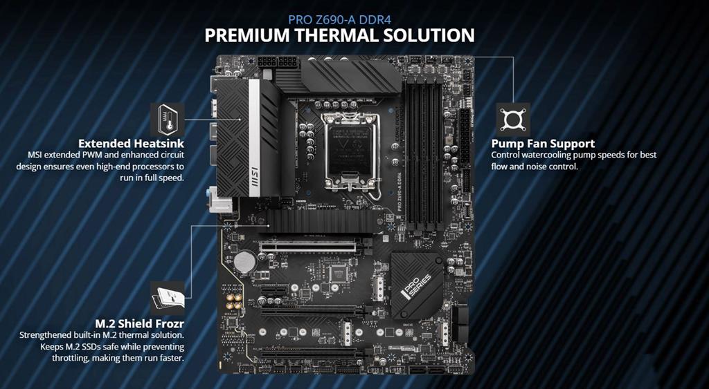 سیستم خنککنندگی فعال با هیتسینکهای بزرگ، از داغ شدن VRM جلوگیری کرده و دمای سیستم را تا 10 درجه کاهش میدهد. -
