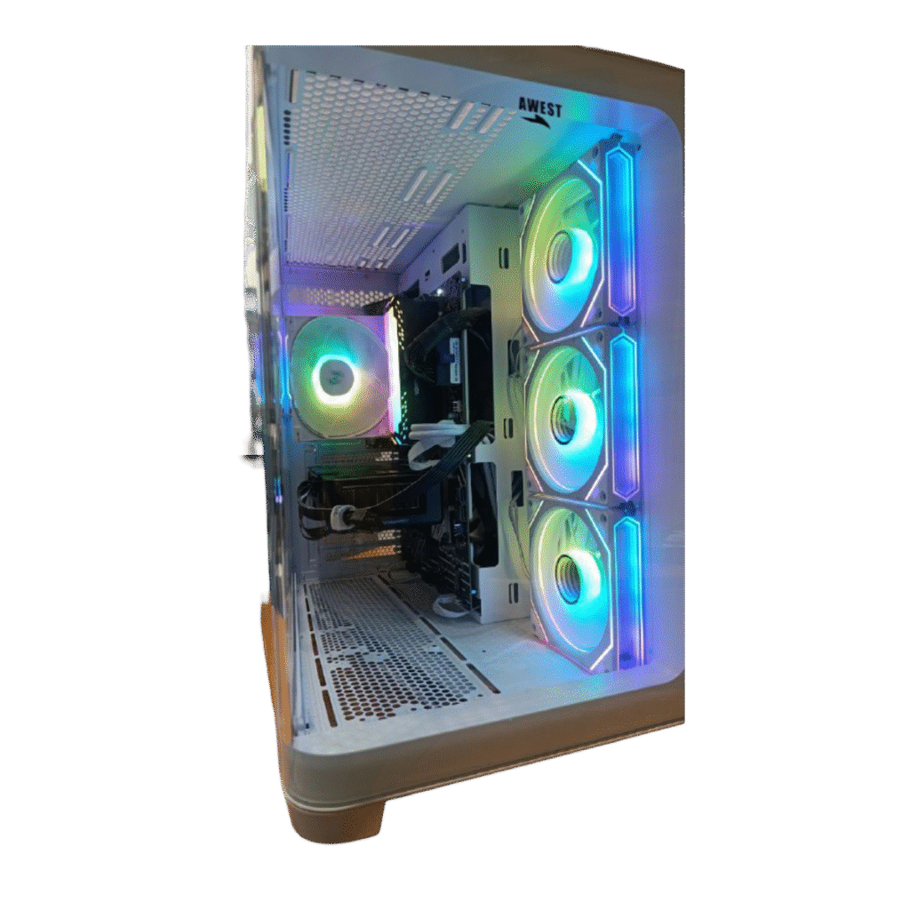 این کیس با بدنهی سفید و مدرن خود (Awest AQ18 White) و نورپردازی RGB حرفهای، جلوهای خاص به محیط کاری یا گیمینگ شما میدهد. همچنین فن خنککننده قدرتمند DeepCool AG400 ARGB White تضمین میکند که حرارت سیستم همیشه در سطحی پایین و ایمن باقی بماند.